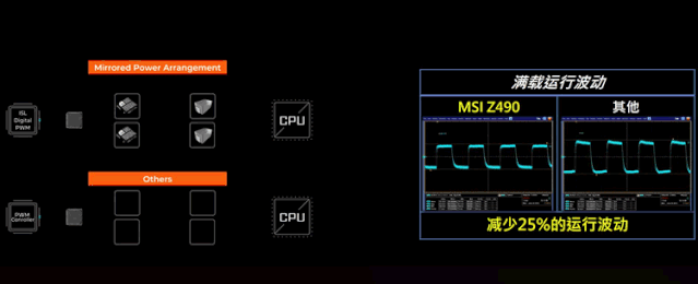 当然还要看电感和MOS的性能,比如微星MEG Z490的大板就是16相倍相+90A输出,MPG为12路并联+55~60A,足以带动i7、i9等处理器。