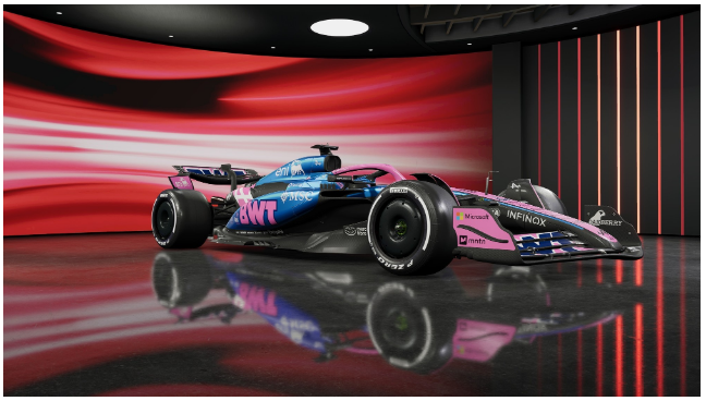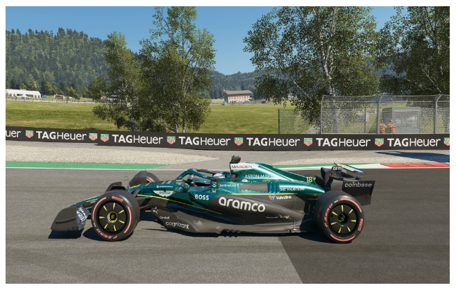 整车的反射效果则更加全面,包括尾板,车身漆面、阴影等等,它将F1赛车的美感与设计感刻画的惟妙惟肖,如果隐藏界面UI的话,真的很难分辨出虚拟还是现实。