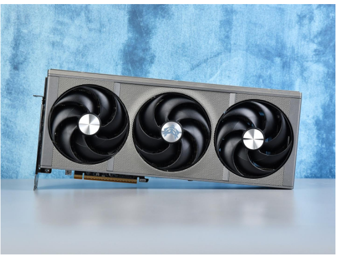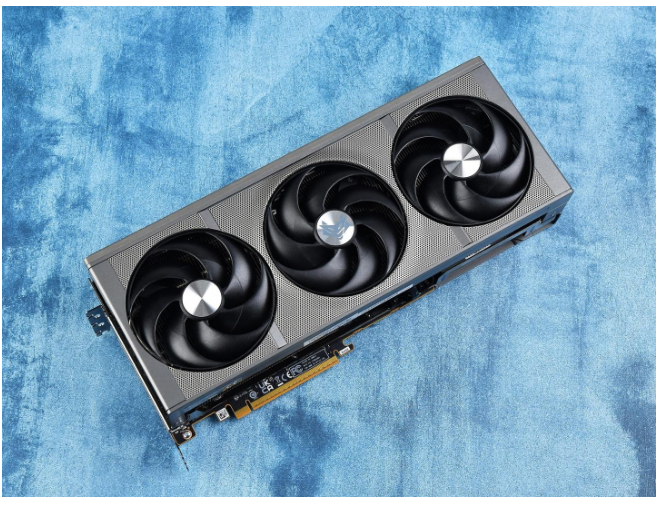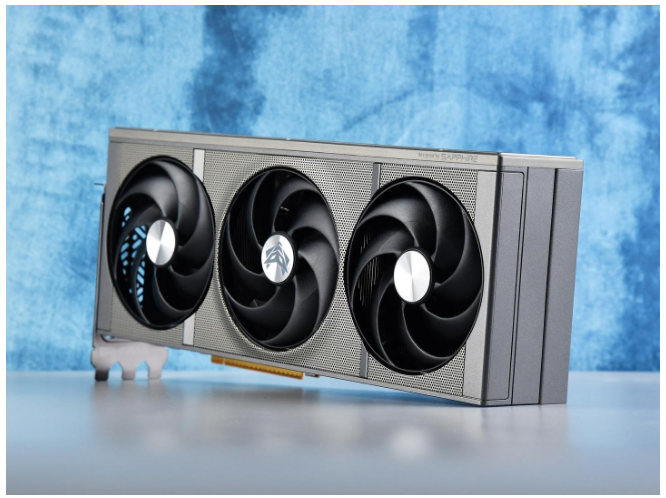 蓝宝石NiTRO+ 氮动RX 9070 XT 16G D6 OC导流罩采用了全新的格栅设计语言,整体为钛灰色,质感极强。尺寸为330.8×128.5×65.68mm,采用三风扇全尺寸设计,占用3.2槽空间。