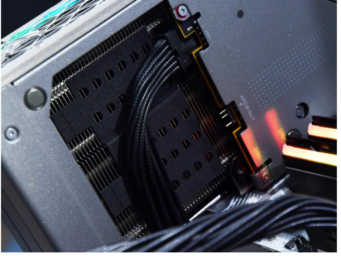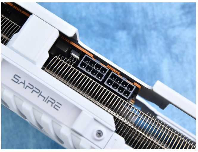 装好磁吸快拆背板后,可遮挡供电线缆并提供ARGB霓彩灯光的连接,为用户提供更整洁的机器外观以及更简单的显卡安装方式。  另外出于安全考虑,供电接口外的鳍片上,还有大面积的镂空隔热垫,防止线材长时间接触高温鳍片产生风险。 蓝宝石NiTRO+ 氮动RX 9070 XT 16G D6 OC显卡采用了全新升级的12V-2x6接口,这也是我们首次在A卡上发现该设计,相比传统的8pin接口,它能够提供单接口600W的输出功率。不仅性能强大,上机后也更加美观。 另外值得说明的一点是,该供电接口位于显卡靠外的一侧,上机后能够让线缆有较大的弯折角度,避免了机箱内空间狭小而导致的直角弯折,有效降低因端子过热而引发的安全隐患。 蓝宝石NiTRO+ 氮动RX 9070 XT 16G D6 OC显卡的TBP为330W,建议电源为750W及以上。