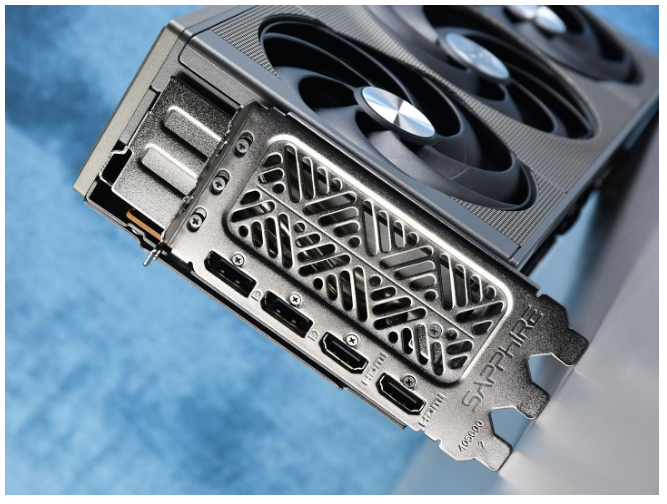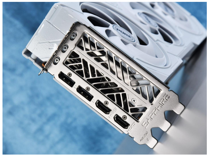 蓝宝石PURE 极地RX 9070 16G D6 OC的整卡厚度为3槽,视频输出接口采用了HDMI 2.1b*2+DP 2.1a*2的设计,可实现高达8K 144Hz的超高分辨率和刷新率,具有12位HDR和全REC 2020色彩空间。