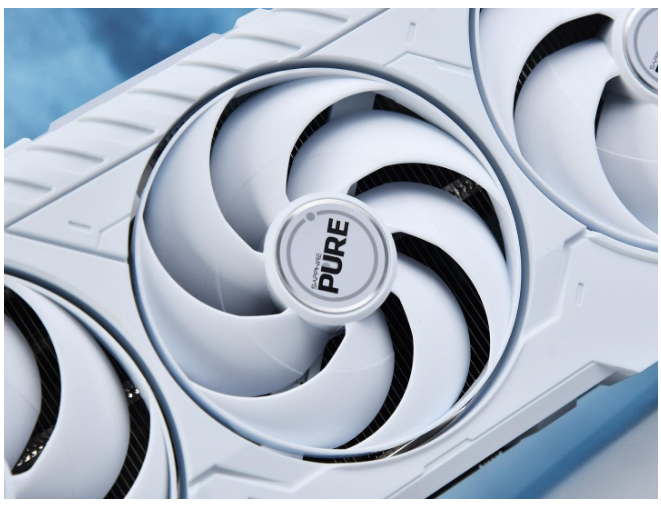 蓝宝石PURE 极地RX 9070 16G D6 OC采用2大1小的3个7叶飞翼轴流风扇,搭配双滚珠轴承结构,可高效散热并延长风扇使用寿命。