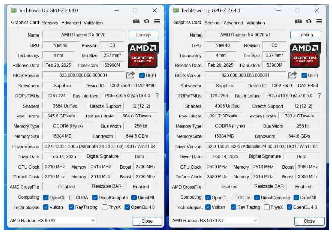 本次评测的产品为蓝宝石PURE 极地RX 9070 16G D6 OC及蓝宝石NiTRO+ 氮动RX 9070 XT 16G D6 OC两张显卡。  AMD这一代显卡最早有传言流出时,便吸引了大量目光,除了新品热度外。AMD的命名方式又双叒叕变了,也是为大家所津津乐道的,好不容易从RX 5000到RX 7000系熟悉了三代,这次则直接来到了RX 9000系。 而除了代数,本代在系列上的划分也区别以往。如RX 7000系性能自上而下为:RX 79xx、RX 78xx、RX 77xx,再遇小幅升级则十位数变动,如:RX 7650 GRE。