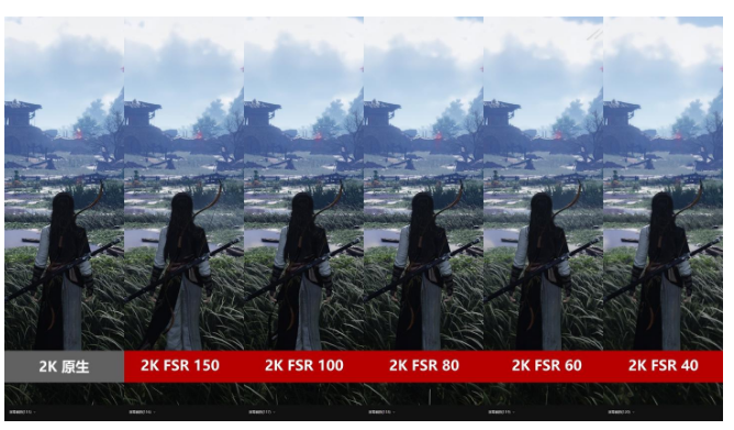 从实际效果来看,在FSR 80时依然有不错的画质还原度;在FSR 60时,角色本身的细节保留较好,但草地有些许锯齿感;而在FSR 40时,则会出现较大的损失。