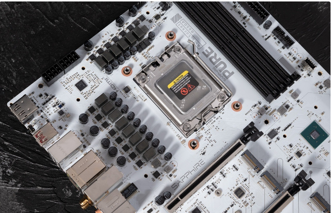 蓝宝石PURE极地B850M WIFI主板与之前我们评测过的蓝宝石NiTRO+氮动B850M WIFI非常相似,不过这款主板采用的是极地设计语言,更适合喜欢纯白主题装机的用户选择,与氮动系列的硬核不同,极地系列更显优雅。