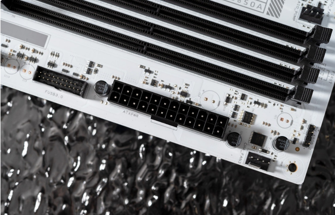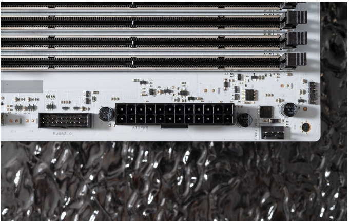 CPU的供电接口为双8Pin,主板的右侧依旧是24Pin供电接口,是硬件能够稳定运转的重要保障之一。
