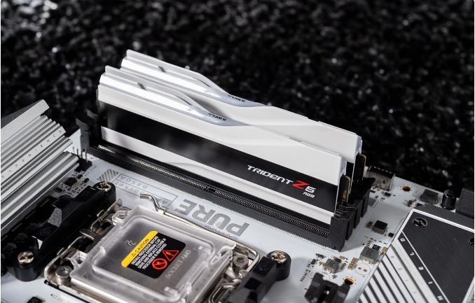 DDR5内存插槽 主板的右侧是内存插槽,一共有4槽DDR5 DIMM内存插槽,单槽可支持48GB容量,4槽最大能够支持192GB的双通道内存容量,内存频率也非常激进,最高可以实现8000MT/s。