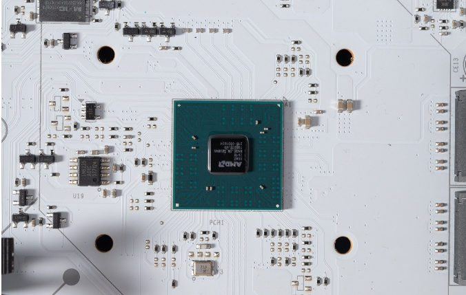 PCB背面的走线布局同样十分整洁,做工相当出色。值得一提的是蓝宝石在内存与PCIe的位置采用了成本更高、技术更为先进的SMT贴片工艺,非常适合持续高频使用的设备。