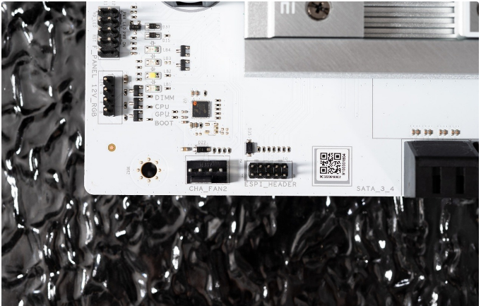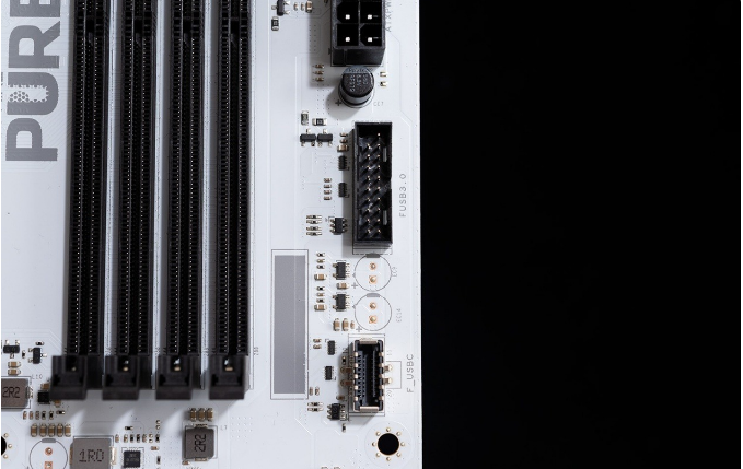 丰富的扩展接口 蓝宝石PURE极地B850A WIFI主板也提供了丰富的扩展接口,主板旁边有USB前置拓展接针,可以扩展出2个USB 3.2 Gen 1 5Gbps(Type-A)接口以及1个前置USB 3.2 Gen 1 5Gbps (Type-C)接口,这个配置基本能够满足玩家的扩展需求。