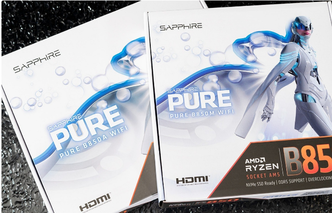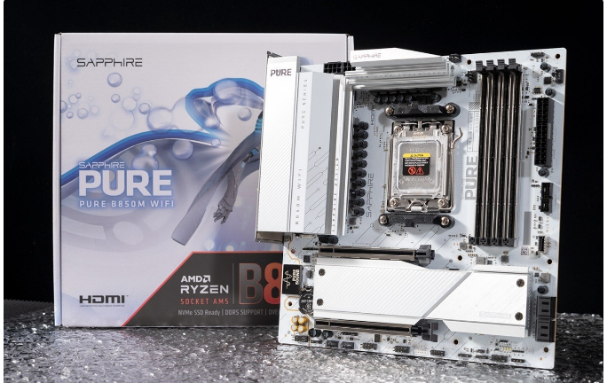 蓝宝石PURE极地B850M WIFI主板介绍 看过了蓝宝石PURE极地B850A WIFI主板,我们再来看看此次PURE极地家族的另一位成员——蓝宝石PURE极地B850M WIFI主板。