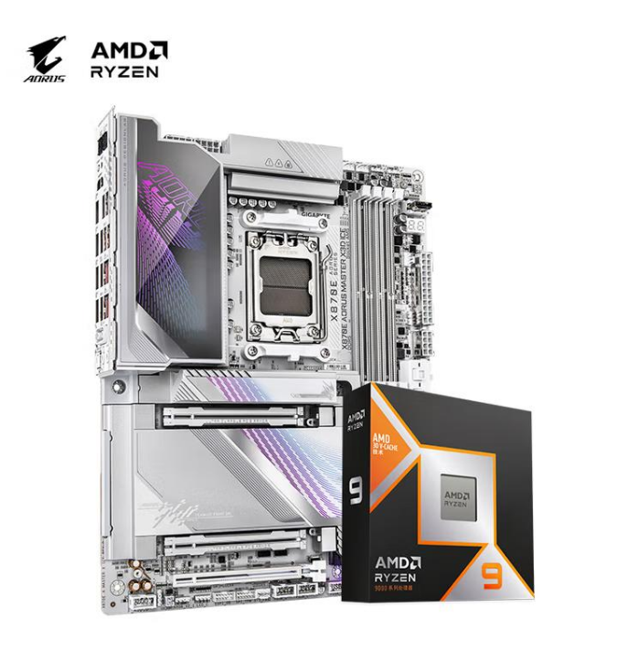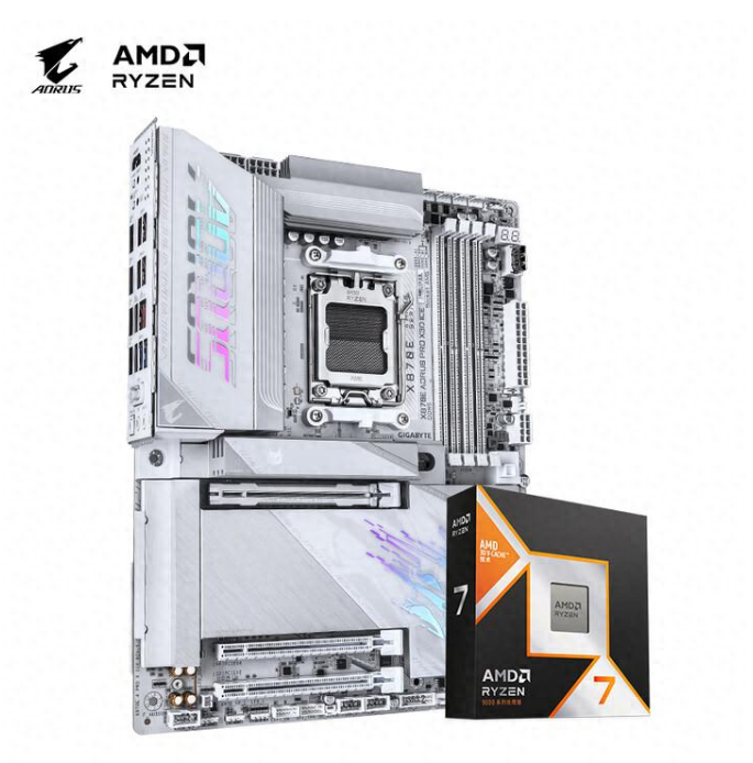 要说今年游戏玩家的终极硬件选择,肯定是AMD锐龙处理器,尤其是X3D这两年的强势崛起,让不少玩家都将锐龙7 9800X3D奉为今年的游戏神U。而为了充分发挥X3D的全部性能,一款用料扎实的主板就显得尤为重要。考虑到很多玩家都头疼如何选购可以与处理器适配的主板,老牌硬件厂商技嘉也是推出了多款板U套装,让玩家挑选时更省心。 技嘉X870E AORUS PRO X3D ICE 电竞冰雕+AMD锐龙7 9800X3D 套装 对于大部分玩家来说能上个9800X3D就已经完完全全够用了,为了能让这颗基于Zen5架构的8核16线程处理器平稳运行,技嘉为其搭配了X870E AORUS PRO X3D ICE 电竞冰雕主板,采用18+2+2相强化供电设计,8层背钻工艺PCB,并且专为AMD X3D处理器深度优化,搭载X3D Turbo Mode 2.0动态AI超频技术,一键释放游戏性能潜力。采用纯白冰雕美学设计,大面积银白散热装甲与直触式热管,确保高负载稳定运行。