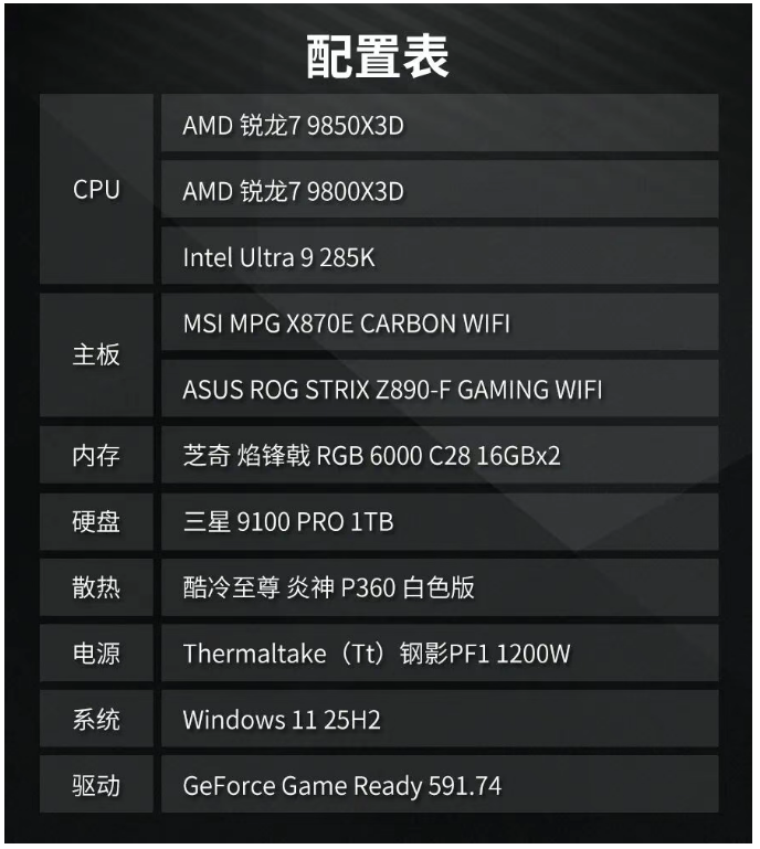 可以说AMD X3D系列处理器已然在高端游戏玩家群体中占据主流地位,就拿此次评测的旗舰型号锐龙7 9850X3D来说,它在各类游戏中的表现极为出色。