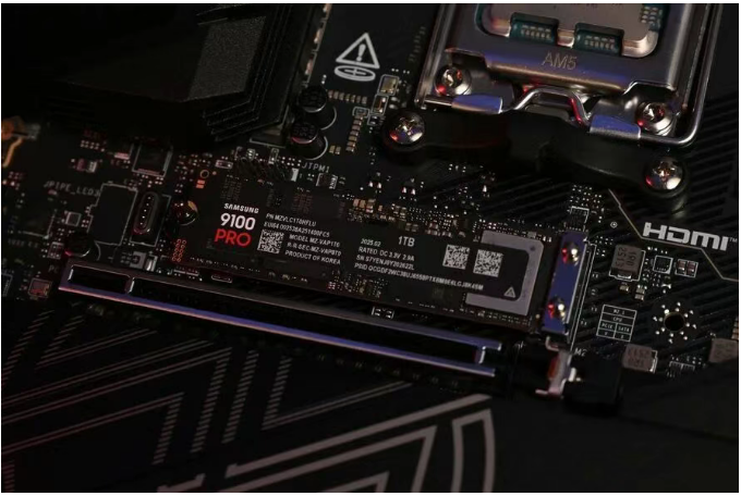 硬盘选用了三星PCIe 5.0旗舰消费级硬盘9100 PRO,高达14800MB/s的顺序读写速度可在AMD平台上满血释放。