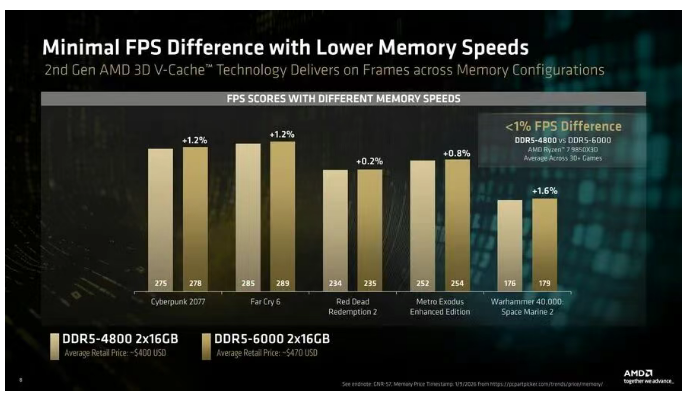 换言之“X3D+普通内存>普通处理器+高频内存”,前者不仅成本相对更低,游戏性能还更强,何乐而不为呢?