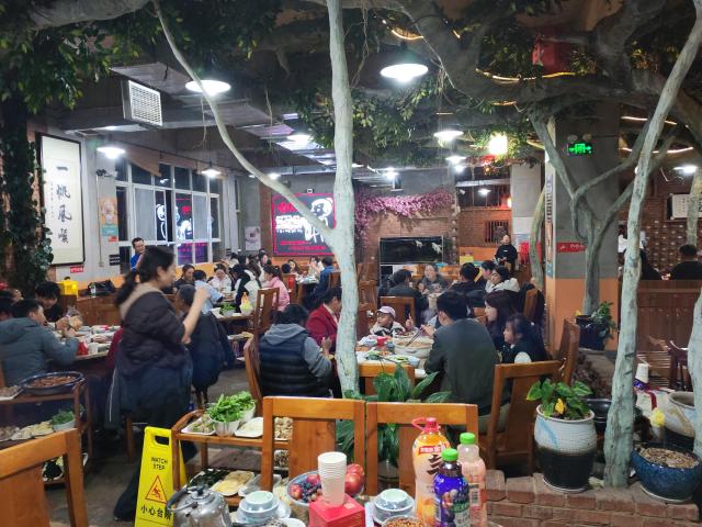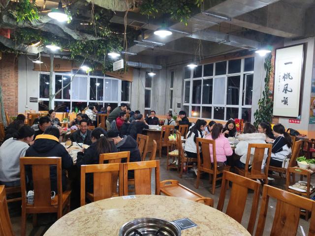 走进餐厅,映入眼帘的是繁茂的仿真绿植与暖黄灯光交织出的惬意氛围,“公勺公筷” 的贴心提示细节满满,墙上 “一帆风顺” 的书法题字更添美好寓意。卓兴的家人们围坐成一个个温馨的圆圈,火锅咕嘟作响,香气氤氲在空气里,驱散了冬夜的寒意。