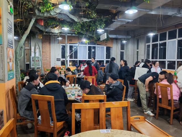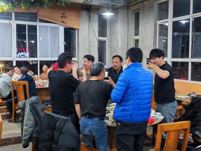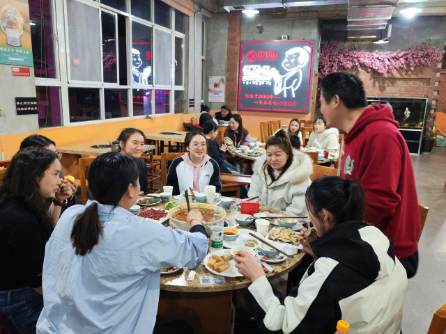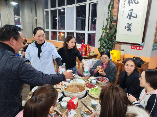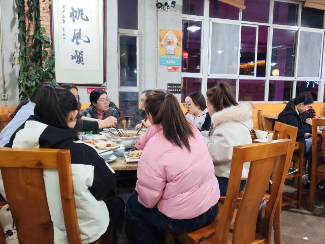 女生们的餐桌上,缤纷的水果、精致的点心与热辣的火锅相映成趣,大家举杯相碰,清脆的笑声里满是闺蜜般的亲昵;男生们的酒局则热烈豪爽,酒杯碰撞间,是并肩作战的默契,也是对未来的豪情期许。有的伙伴在分享生活趣事,有的在交流工作心得,平日办公室里严谨的伙伴们,此刻都卸下了疲惫,露出最放松的笑容。