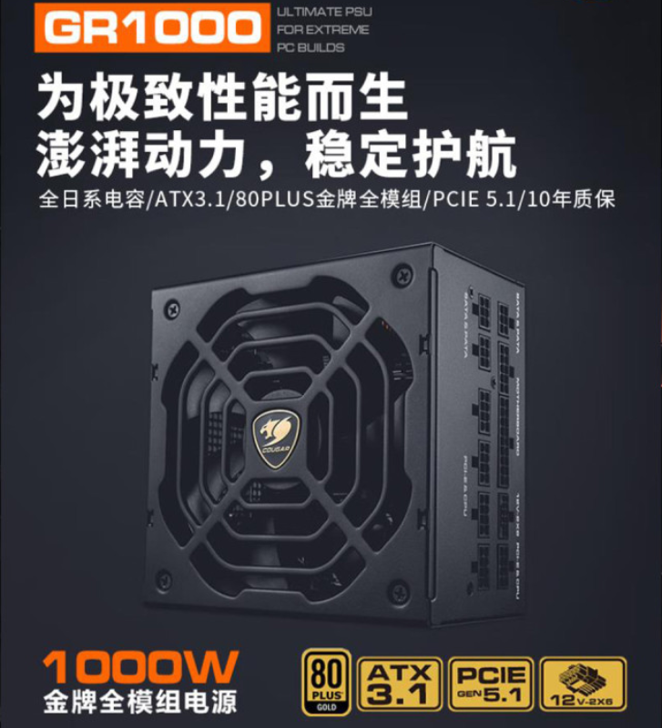 六、稳定心脏:骨伽 GR1000 1000W 金牌全模组电源 —— 澎湃动力的可靠源泉 高端硬件需要充足稳定的电力,骨伽 GR1000 是当之无愧的 “动力心脏”。它通过80Plus 金牌认证,典型负载转换效率高达 91%,节能省电且发热量低。1000W 额定功率,+12V 单路输出 83.3A,轻松带动 9950X3D+RX 9070XT 的旗舰组合(双核心硬件满载功耗约 534W),未来升级更高功耗硬件也无需更换电源。