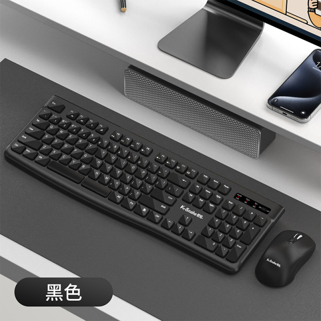 27 英寸主流家用尺寸,1080P 高清分辨率、100Hz 高刷新率,相比普通 60Hz 显示器,画面滑动更流畅,办公滚动文档、网页浏览、影音画面顺滑不拖影;曲面无边框全面屏设计,视觉包裹感舒适,窄边框颜值高,黑色简约外观适配居家桌面;低蓝光护眼面板,长时间办公、上网课、追剧用眼疲劳度大幅降低,适配家用、办公、网课全场景显示需求。 蝰蛇 WK900 黑色双模无线键鼠套装