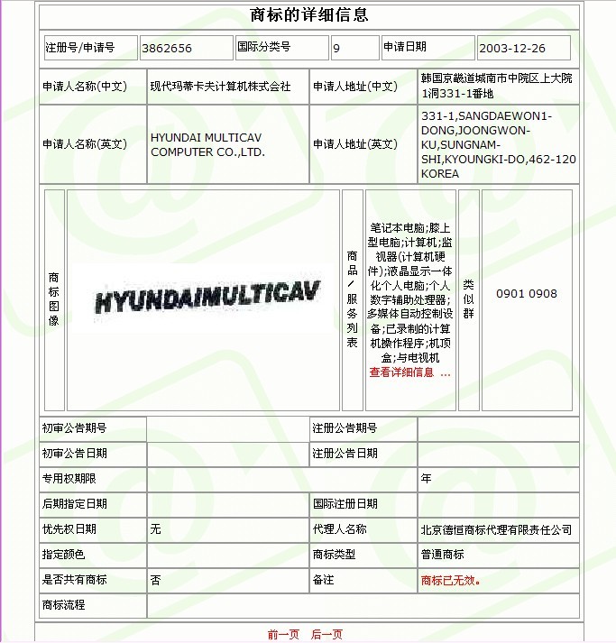 工商总局注销HYUNDAIMULTICAV显示器商标 |