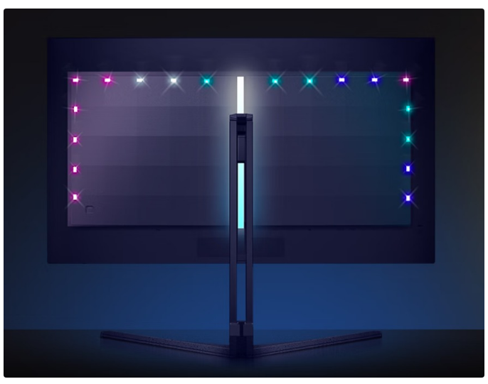 在视觉沉浸感的营造上,EVNIA 27M2N8800的第三代Ambiglow环景光技术堪称点睛之笔。8分区独立控光系统能够精准捕捉屏幕边缘的色彩变化,并通过机身背后的LED灯带同步投射到墙面,这种延展屏幕的效果不仅增强了视觉广度,更在长时间游戏时减轻了眼部疲劳。当游戏中的雷电划破夜空,环景光随之闪烁;当角色踏入静谧的竹林,柔和的绿光便会弥漫在桌面周围,声光电的联动让玩家仿佛真正置身于游戏世界。