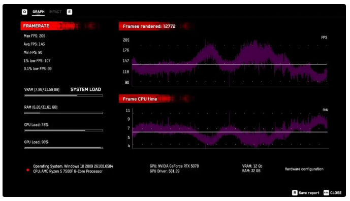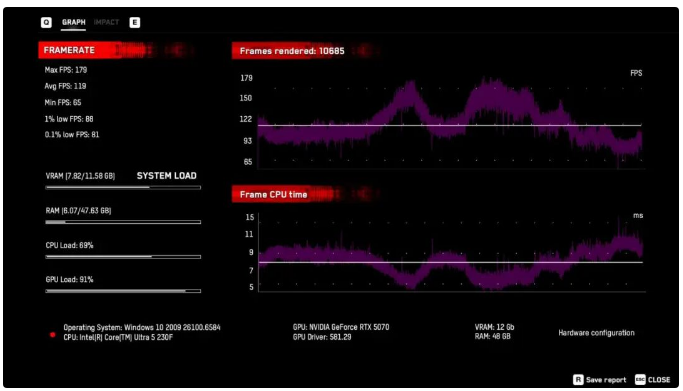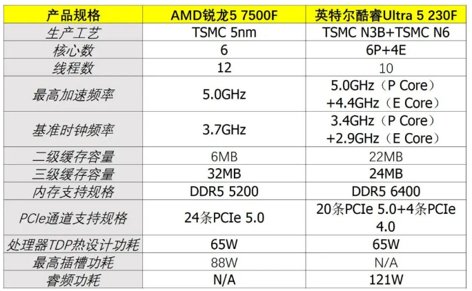 对于准备升级处理器、装新电脑的用户而言,近段时间比较糟心的事儿便是内存、固态硬盘双双大幅涨价。因此留给其他配件的资金就更少了,要想在有限的预算内,装出一台仍然具备性价比的游戏电脑,就必须对处理器、显卡等重要配件进行精挑细选。接下来就让我们看看在最受关注的千元级游戏处理器市场,哪款产品更值得购买。 千元级游戏处理器市场的两大悍将目前千元级游戏处理器市场主要由AMD锐龙5 7500F、英特尔酷睿Ultra 5 230F组成。其中前者售价在979元左右,后者则贵了80元,价格在1059元。对比当下基于Zen 5架构的锐龙5 9500F,锐龙5 7500F的确是一位“老兵”,但它也有自己的优势——价格更便宜,而且Zen 4架构在今天仍能一战,与英特尔最新的Arrow Lake架构相比也并不逊色。首先它的IPC性能较Zen 3架构提升13%;其次它增加了用于加速机器学习和计算密集型工作负载、AI加速的AVX-512指令集,在执行部分AI运算,比如文本分类、图片超分辨率任务,以及运行PS3游戏机模拟器等支持AVX-512指令集的应用时,Zen 4处理器会有快得多的运行速度。此外,基于Zen 4架构的处理器采用台积电TSMC N5 5nm工艺,可以有效提升能效比。 ▲在相同性能下,Zen4处理器的功耗比锐龙5000系列处理器降低了62%;在相同功耗下,Zen4处理器的性能比锐龙5000系列处理器提升了49%。 ▲Zen 4处理器的另一个重大升级是加入了对AVX-512指令集的支持 在扩展能力上,所有Zen 4处理器均支持DDR5内存与PCIe 5.0技术。其中它对DDR5内存的标称支持频率为最高DDR5 5200,当然实际上Zen 4处理器是可以通过EXPO内存一键超频技术轻松支持DDR5 6000,甚至更高速率的内存。与英特尔消费级处理器相比,Zen 4架构的处理器还有一大优势——可以连接更多的高性能设备。Zen 4处理器拥有24条PCIe 5.0可用通道,意味着这些处理器最多可以连接一块PCIe 5.0 x16显卡,两块PCIe 5.0 x4 SSD,并释放出它们的最大性能。英特尔第14代酷睿处理器只有16条PCIe 5.0通道,无法同时发挥出一块PCIe 5.0 x16显卡与一块PCIe 5.0 x4 SSD的最大性能。而包括酷睿Ultra 5 230F在内的英特尔酷睿ULtra 200系列处理器也只有20条PCIe 5.0通道,只能最多同时发挥出一块PCIe 5.0 x16显卡与一块PCIe 5.0 x4 SSD的最大性能。 ▲Zen 4处理器内部I/O Die的主要特性,包括对PCIe 5.0、DDR5技术的支持,提供了多达28条PCIe 5.0通道,用户可以使用其中的24条。 具体来看,锐龙5 7500F也完全拥有以上技术特性,它采用6颗Zen 4大核心、12线程设计,拥有多达6MB二级缓存、32MB三级缓存。不过锐龙5 7500F没有内置显示核心,必须搭配独立显卡才能使用,这是因为锐龙5 7500F本身就是为那些不需要内置显示核心的游戏玩家而设计,去掉内置显示核心后,可以降低生产成本,这也是锐龙5 7500F处理器售价低的原因之一。除此之外,锐龙5 7500F还拥有最高5.0GHz的加速频率,但它的功耗并不高,其TDP热设计功耗只有65W,最高标称插槽功耗也只有88W。值得一提的是,锐龙5 7500F处理器可以支持处理器、内存超频,而且无论是使用主流的B650、B850主板还是高端的X870系列主板都可以对它超频。 ▲锐龙5 7500F采用LGA AM5封装,配备八爪鱼外形的IHS散热顶盖。 与锐龙5 7500F相比,酷睿Ultra 5 230F则拥有更多的核心数量。它总计有10颗核心,采用6颗P Core性能核搭配4颗E Core小核心能效核的配置。其中P Core的微架构从第14代酷睿处理器所采用的Raptor Cove进化至Lion Cove。整个分支预测宽度增加至之前的8倍、VEC和INT的乱序执行部分进行分离调度,此外还带来了更宽的调度单元、增强的内存子系统,并提升了缓存容量。其中每核心一级缓存容量从80KB提升到112KB,每核心的二级缓存容量从2MB提升到3MB。Lion Cove还取消了超线程技术以及相关的晶体管资源,以降低功耗、发热量以及成本。因此虽然酷睿Ultra 5 230F有6颗P Core性能核,但其计算线程数量也只有6条,加上4颗E Core,处理器的计算线程总数量为10条,反而比锐龙5 7500F还要少两条。 ▲酷睿Ultra 5 230F采用LGA1851封装 ▲英特尔官方规格显示,酷睿Ultra 5 230F的PCIe通道并未彻底淘汰PCIe 4.0规格,其中有4条仍是4.0标准。 酷睿Ultra 5 230F的P Core性能核基准频率为3.4GHz,睿频频率高达5.0GHz,其E Core能效核睿频频率达到4.4GHz。同时,英特尔还在酷睿Ultra 5 230F中内置了NPU神经网络处理器,用于对AI应用的加速,可以提供最高13 TOPS的INT8算力。扩展能力方面,酷睿Ultra 5 230F提供20条PCIe 5.0通道,标称内存支持能力则提高到DDR5 6400。不过酷睿Ultra 5 230F只支持对内存超频,不能对处理器超频。同时尽管它的标称TDP热设计功耗也是65W,但它的标称睿频功耗达到121W。由于在正常使用环境中,英特尔处理器都会开启睿频加速功能,因此这意味着酷睿Ultra 5 230F在实际工作中,拥有更高的功耗。 我们如何测试 测试平台 主板:AMD B850主板、英特尔B860主板 处理器:锐龙5 7500F、酷睿Ultra 5 230F 内存:DDR5 6000 32GB套装(AMD)、DDR5 6400 32GB套装(英特尔) 硬盘:长江存储PC450商用消费级固态硬盘1TB 显卡:GeForce RTX 5070 电源:鑫谷GM1250W 操作系统:Windows 11 24H2 接下来我们将测试两款处理器的游戏性能表现,测试中我们会释放锐龙5 7500F、酷睿Ultra 5 230F两款处理器在默认设置下的最大性能。其中测试锐龙5 7500F时,我们会在B850主板BIOS中手动打开这款处理器的PBO(精准性能提升)功能。B860主板中也不会使用限制了功耗的Intel Default Settings(英特尔默认设置),而将载入PL1、PL2功耗全部设置为250W的Unlimited Set