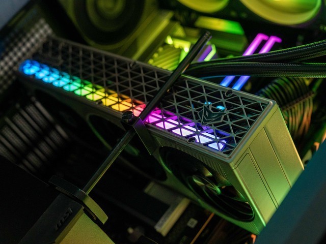外观设计上,显卡配备了第二代ARGB灯条的彗星模式灯效,结合铝制扬声器网格前面板,不仅展现独特美学风格,还能与整机RGB光效实现完美联动,为玩家打造沉浸式的视觉体验。