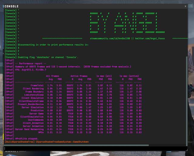 再看看CPU超频后的游戏帧数表现,CS2的Benchmark测试,1080P高画质,平均帧数为573.2,提升0.6%;1%Low帧为284.7,提升1.5%。