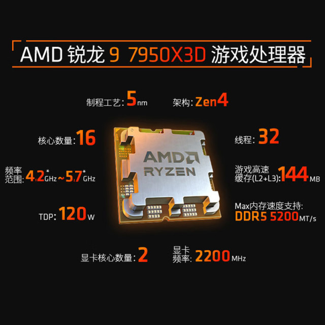 1. 核心性能三件套:旗舰级输出,无短板体验 CPU选用AMD 锐龙R9-7950X3D,作为Zen4架构的旗舰级处理器,其拥有16核心32线程,基础频率4.2GHz,凭借AMD独家的3D V-Cache缓存技术,总缓存高达144MB,既能满足3A游戏的高帧率需求,也能轻松应对视频渲染、代码编译等重负载生产力任务。相较于同级别竞品,这款CPU在游戏场景中优势明显,尤其是1080P分辨率下,游戏性能表现突出,同时120W的TDP功耗控制合理,搭配水冷散热器可实现稳定运行,且提供一年包换服务,保障使用体验。