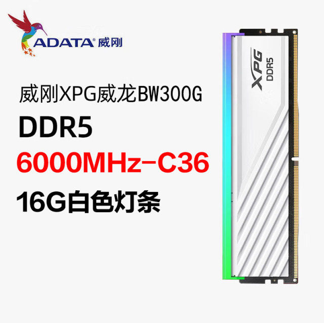 2. 存储与散热:高速流畅,稳定控温 内存选用威刚 BW300G 32G(16G*2)6000 DDR5 灯条,白色外观搭配RGB灯效,既能融入纯白主题,又能通过灯光营造电竞氛围。6000MHz的高频搭配C30时序,读写速度出色,32GB的大容量可满足多任务运行需求,无论是同时开启多个游戏后台,还是运行PR、AE等专业软件,都能避免卡顿,且终身质保的服务,让内存成为整套主机中“终身无忧”的配件。