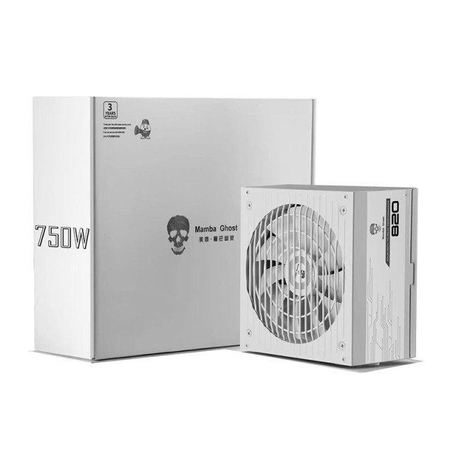 3. 电源、机箱与外设:颜值与实用兼顾 电源选用美商Mamba Ghost 820 额定750W 白色电脑电源,750W额定功率可完全满足整套主机的供电需求,即使显卡和CPU同时高负载运行,也能提供稳定的电力输出,避免因供电不稳导致的死机、卡顿问题。白色外观贴合主机主题,采用静音风扇设计,运行噪音低,三年包换的质保也能保障电源的长期稳定使用。