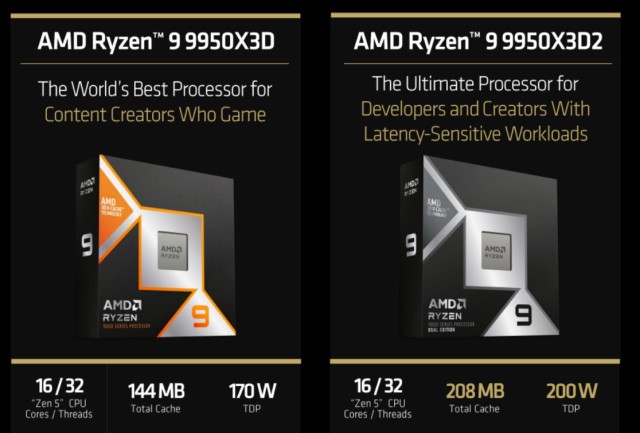 锐龙 R9 9950X3D2 基于Zen5 Granite Ridge 架构、台积电 4nm 核心工艺,AM5 接口原生兼容,是 AMD 首款双 CCD 全域 3D 缓存桌面处理器。 完整参数
